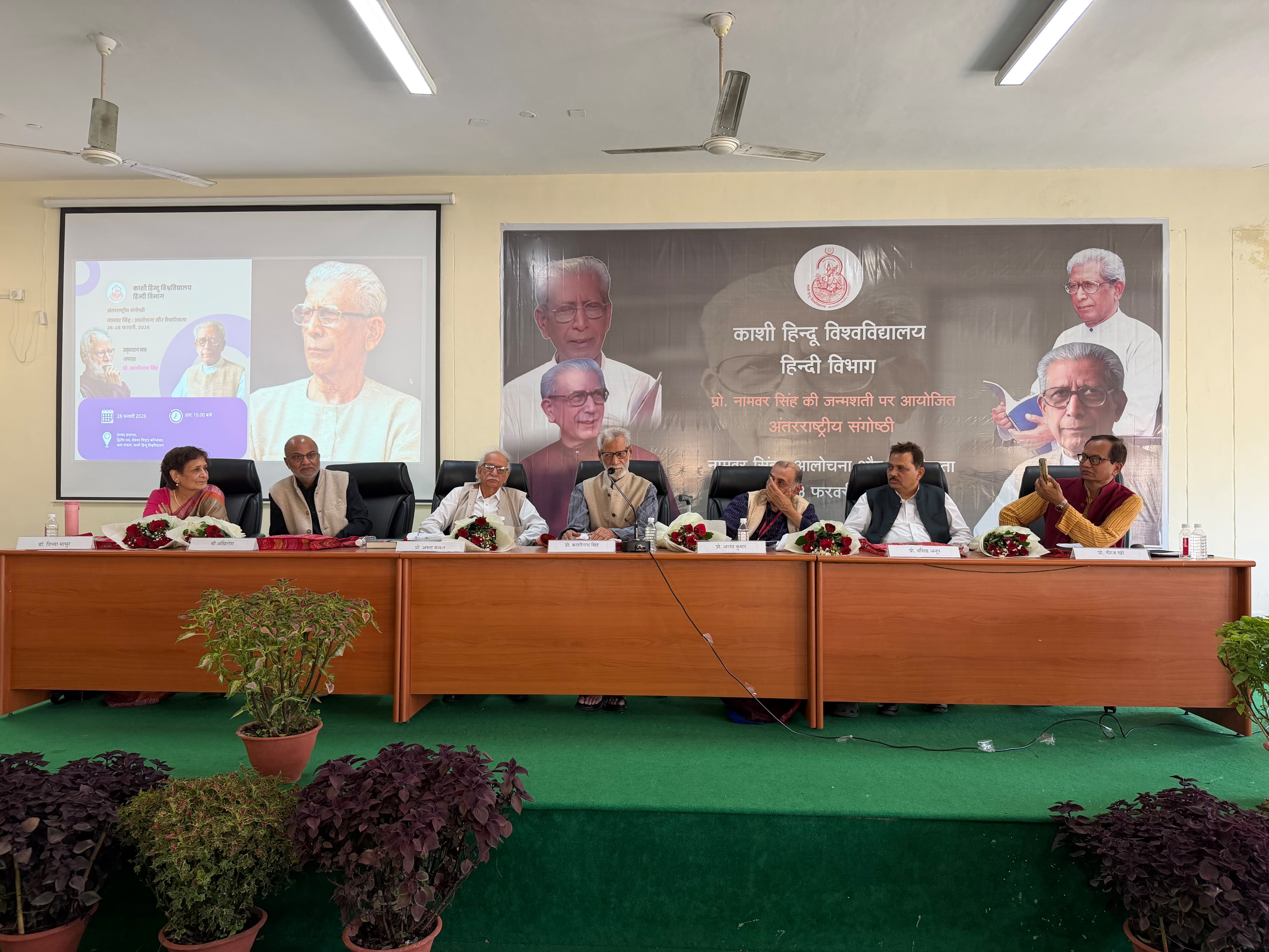 अध्यक्षीय वक्तव्य देते हुए साहित्य अकादमी सम्मान से सम्मानित प्रख्यात कथाकार प्रो. काशीनाथ सिंह ने कहा कि बीएचयू के हिन्दी विभाग में नामवर जी पर यह पहली अंतरराष्ट्रीय संगोष्ठी है। नामवर जी पहले कविताएँ लिखते थे। आलोचना लेखन की शुरुआत इसी हिन्दी विभाग से शुरू हुई। उन्होंने बताया कि हमारे समय में नामवर जी छात्र संघ के अध्यक्ष भी थे। बनारस नहीं होता तो नामवर नहीं होते! नामवर को नामवर बनारस ने बनाया। ‘हिन्दी के विकास के अपभ्रंश का योगदान’ शीर्षक नामवर जी को केशव प्रसाद मिश्र जी ने दिया था। केशव प्रसाद जी साधारण विद्वान नहीं थे। विचारों की स्वच्छता से भाषा में स्पष्टता आती है। मेरे लिए नामवर वह फूल हैं, जिसकी सुगन्ध रह गयी है।